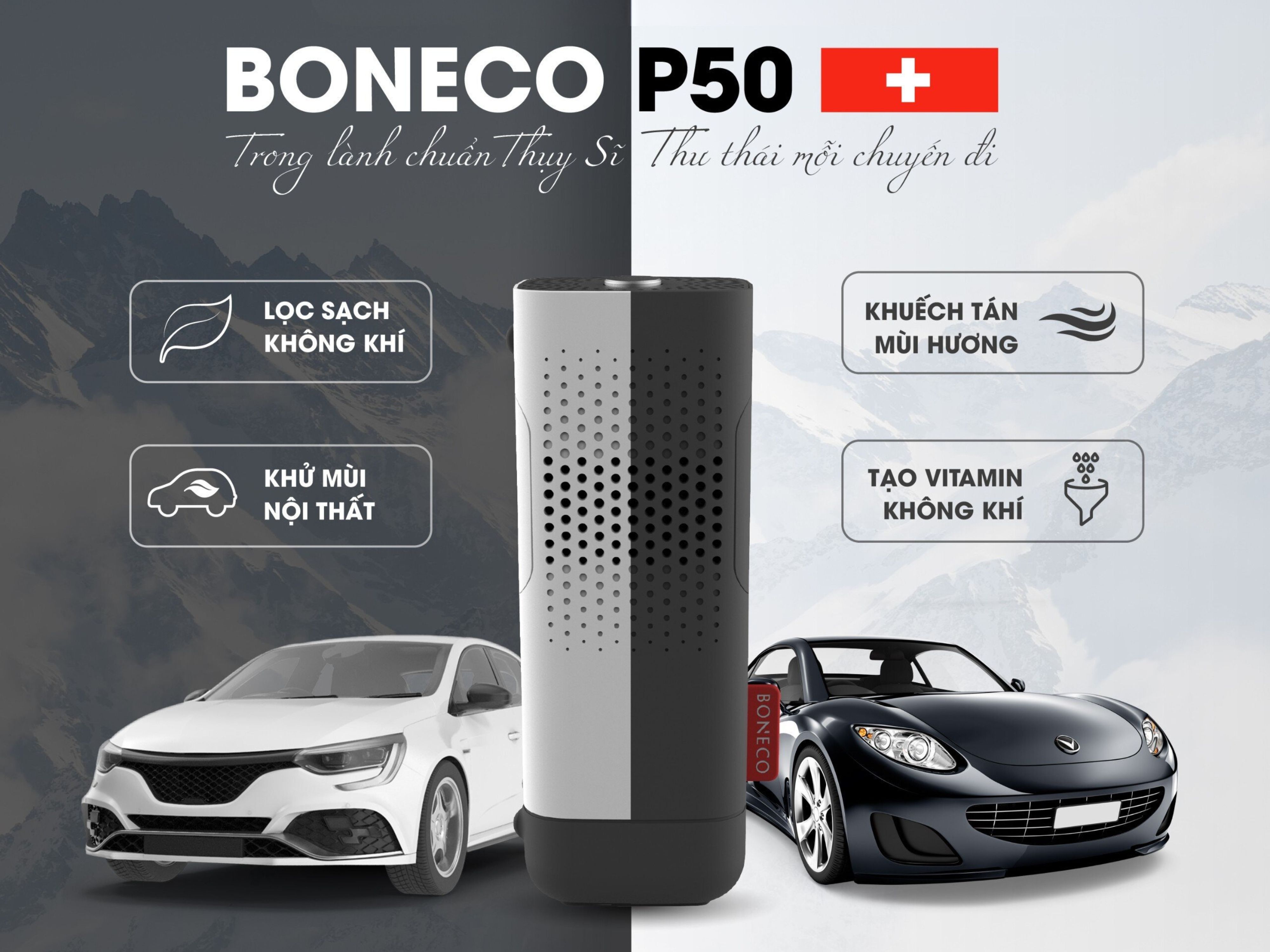 BONECO P50: Giải pháp máy lọc không khí ô tô xe sang chuẩn Thụy Sĩ